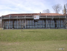 1. Bauabschnitt: Gerüst aufstellen und Hacken befestigen