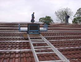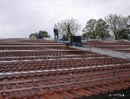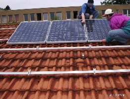 2. und 3. Bauabschnitt Schienen und Module werden befestigt